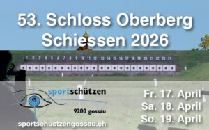 Ein herzliches Willkommen allen Schützinnen und Schützen am 53. Schloss Oberberg Schiessen 2026. Vorab ein grosses Dankeschön allen Sponsoren und Helfern. Schiessplan: